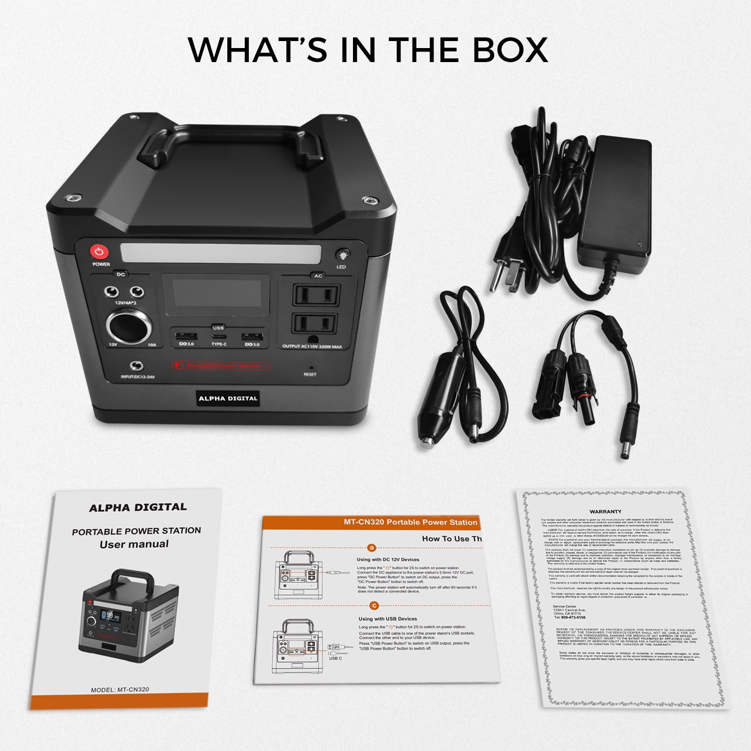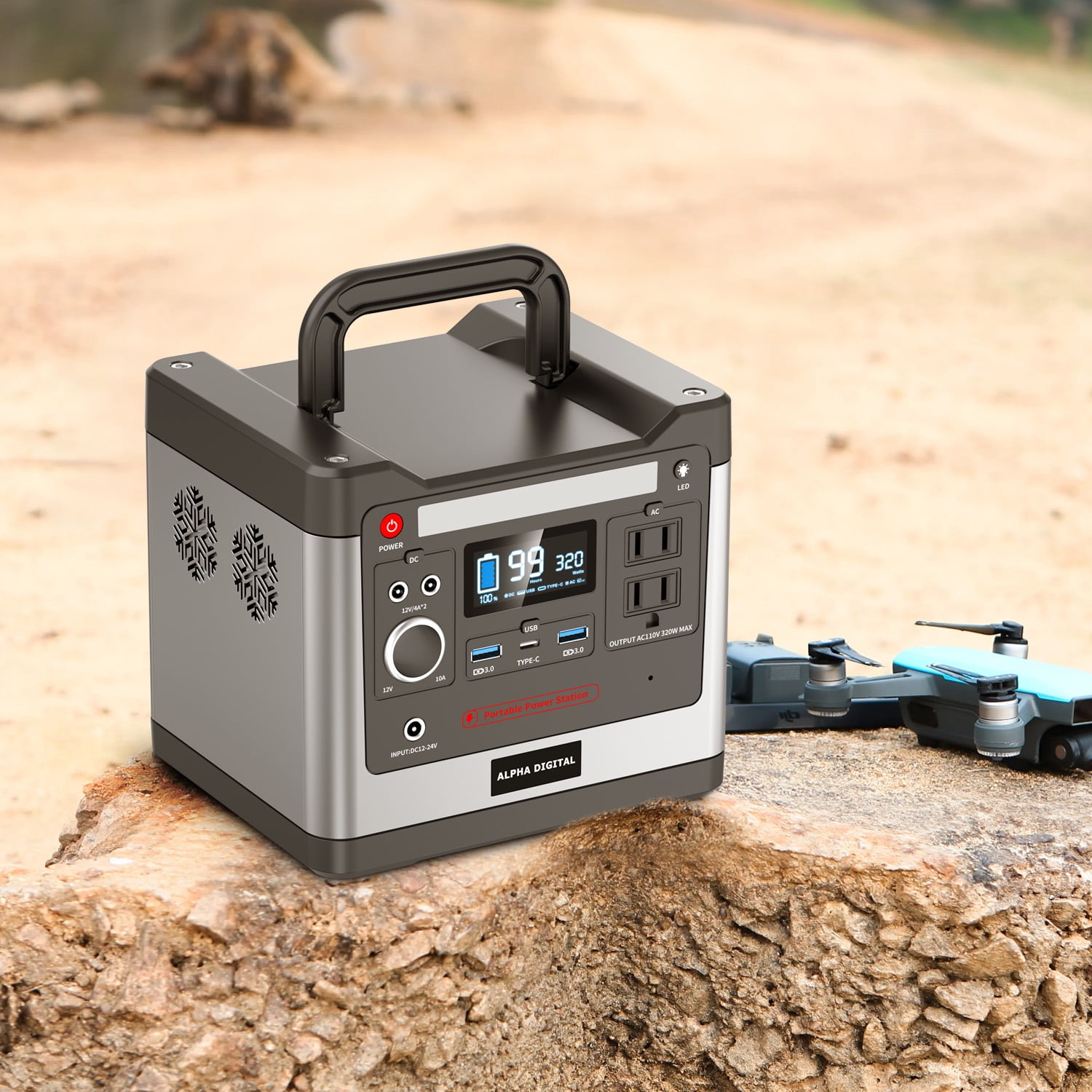 Introducing Alpha Digital’s CN320, a portable high-capacity Power Station. Recharge it effortlessly through solar, wall, or car charging. With 298Wh/93120mAh capacity and 320W power, it fuels various devices like smartphones, laptop…