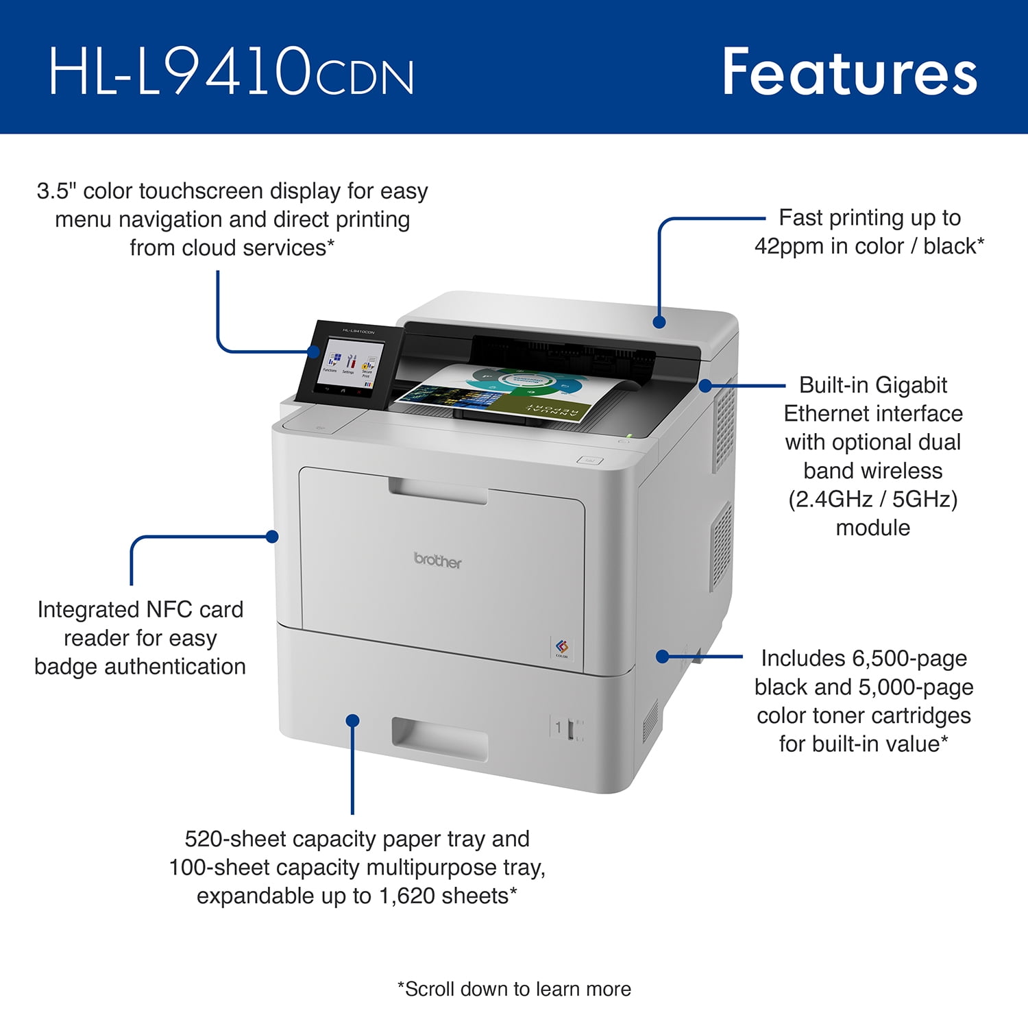 - Brother HL-L9410CDN Enterprise Color Laser Printer with Fast Printing, Large Paper Capacity, and Advanced Security Features