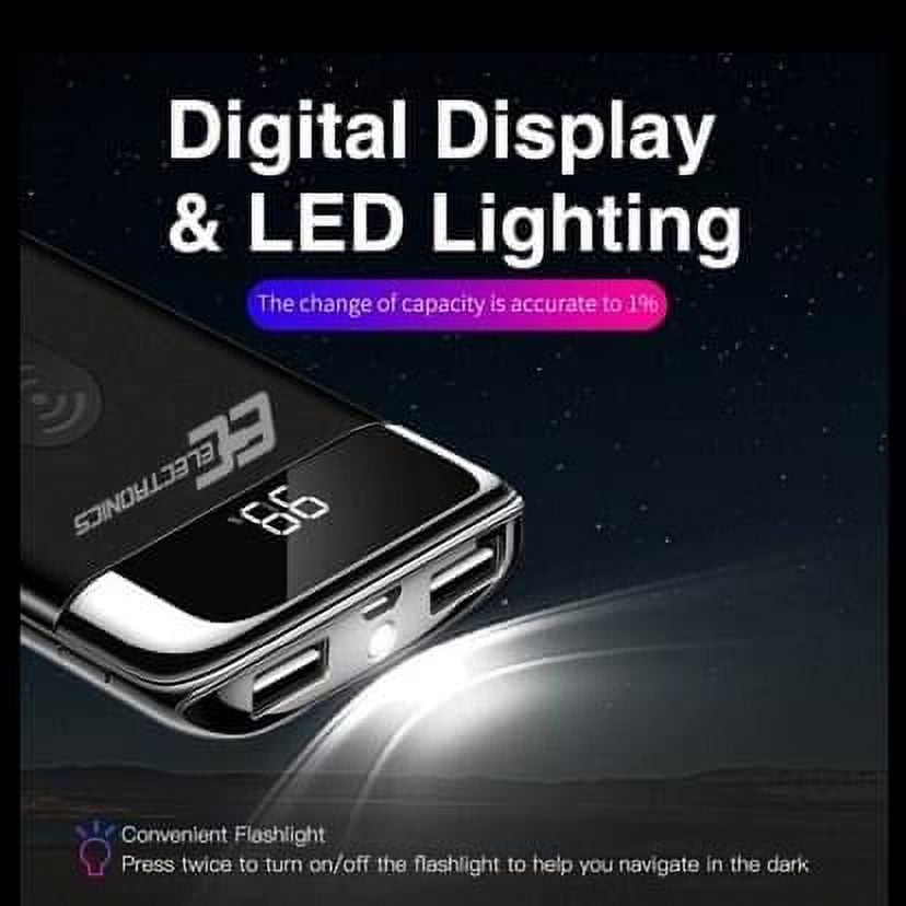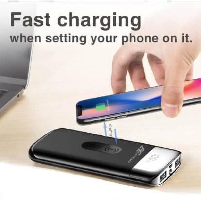 10,000 mAh Huge Capacity: EC Elite portable charger can provide 3.5 charges for iPhone 12, 3 charges for galaxy Note 10+. Lightweight and compact, easy to be carried for traveling purposes. High-Speed Charging: This portable phone charger deliver fastest charge speed up to 2.4A. Fully charge iPhone Xs in 1.5 hours, Samsung S9 in 2 hours. 3 in 1 Qi wireless charging: supports charging up to 3 devices at the same time. Smart LED display of remaining power. Build-in flashlight for low light use. Aluminum Shell looks more elegant, modern and fashion. And with a high quality, UL certified Lithium Ion battery, this power bank ensures you and your devices are safe.