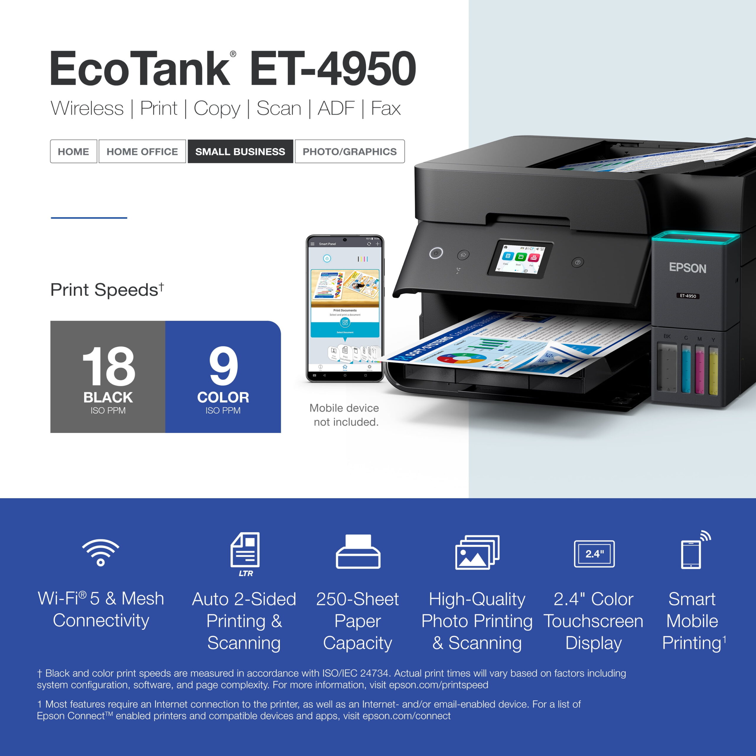 Epson EcoTank ET-4950 Wireless All-in-One Color Supertank Printer – Black