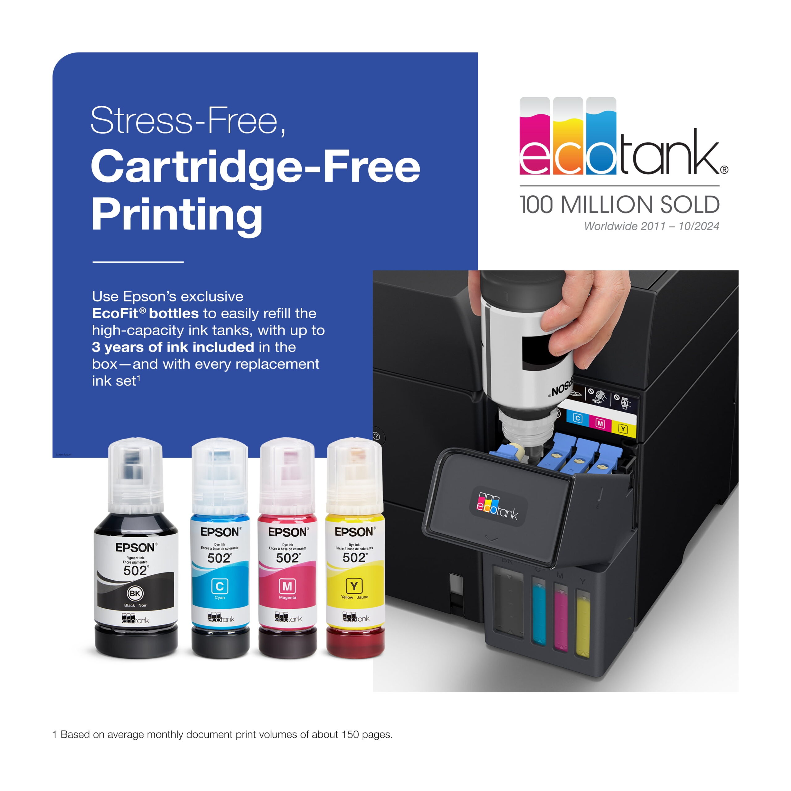 Introducing the EcoTank ET-4950—The Ultimate Home Office Printer. Say goodbye to expensive cartridges with the Epson EcoTank ET-4950, the newest innovation from a recognized leader in photographic printing. Combining simplicity with a modern design, the ET-4950 features advanced technology that enhances both performance and print quality, making it an ideal choice for productive office printing—including content created by AI. Powered by PrecisionCore Heat-Free technology, the ET-4950 offers a duty cycle that’s twice as robust as its predecessor. And unlike conventional thermal inkjet printers, its unique permanent printhead is engineered to last the life of the printer. Designed to be simple and error-free, refilling ink is a breeze with large ink tanks and uniquely keyed EcoFit bottles—no mess, no stress and no ink bottle mix-ups. And with enough ink in the box to last up to three years, you’ll enjoy affordable color printing without the hassle of frequently replacing cartridges. Featuring Ethernet and Wi-Fi for seamless connectivity, along with the user-friendly Epson Smart Panel app, you can easily print, scan, and more directly from your computer or mobile device. Choose Epson EcoTank, the #1 Best-Selling Supertank Printer. With more than 100 million units sold globally across seven generations of innovation, EcoTank consistently delivers affordable, photo-quality prints, making it a reliable choice for all your printing needs.