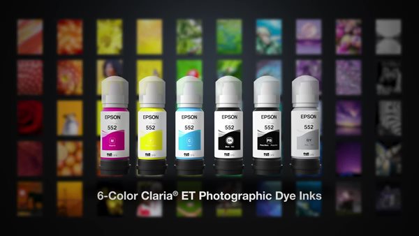 - Cartridge-free printing for lab-quality photos, graphics and creative projects — get vibrant colors and sharp text with Epson’s high-accuracy printhead and Claria ET Premium 6-color inks; print a 4 x 6″ photo in as fast as 15 seconds (4)