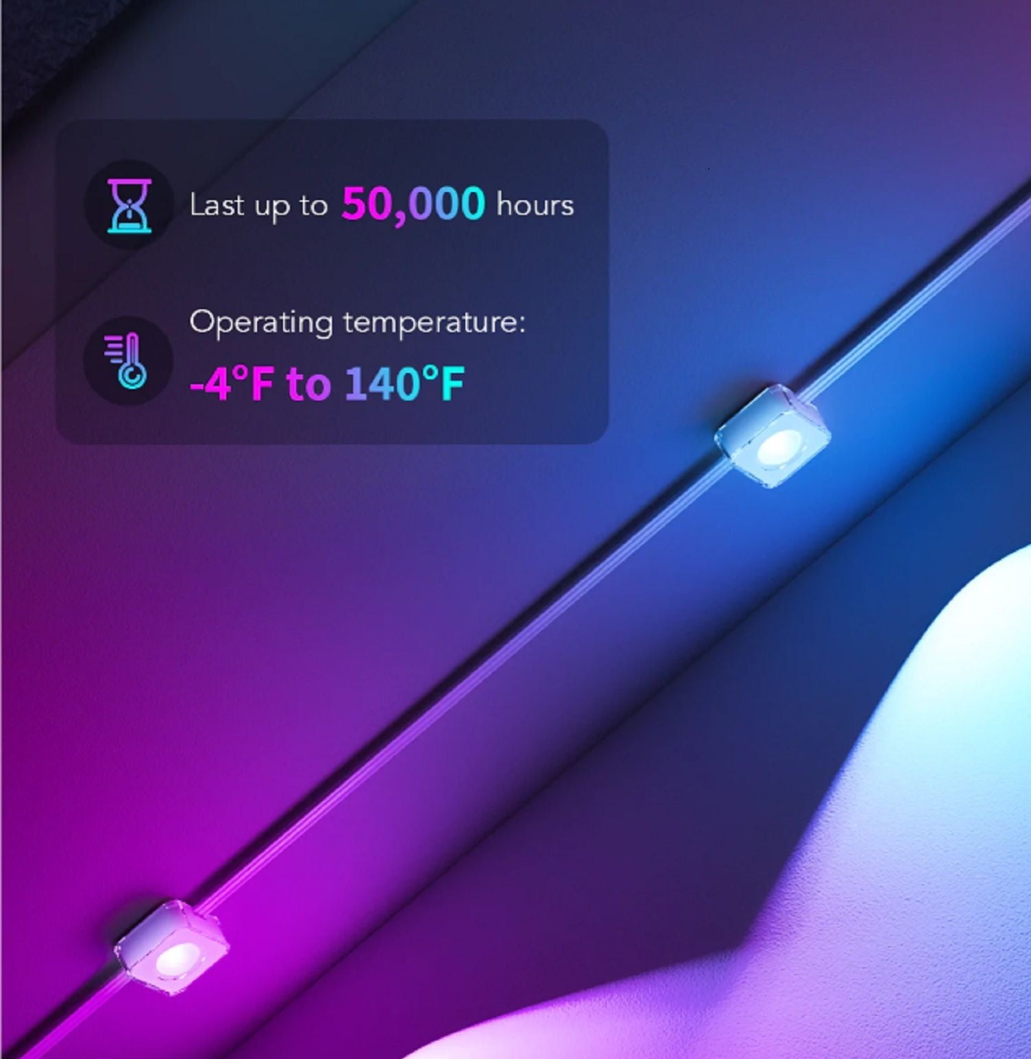 • Simple Installation: Easily install each light using the provided VHB glue and clips in just 8 seconds. Waterproof joints allow for splicing every 16.4 feet; please note that the lights cannot be cut