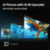 - AI Picture with AI 4K Upscaler: Stream your favorite live sports with striking clarity. AI 4K Upscaler uses machine learning models to enhance low-resolution content to near 4K quality. Watch beloved movies, home videos and TV broadcasts with sharper edges, more detailed textures and improved visual quality.