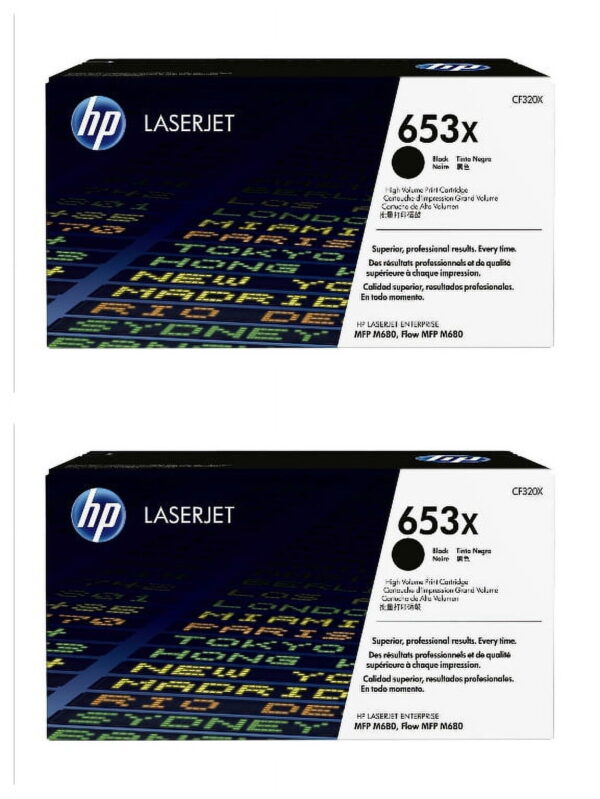 HP 653X (CF320X) Black High Yield Original Toner Cartridge. HP 653X (CF320X) toner cartridges work with: HP Color LaserJet Enterprise M680. Save up to 25% with high-yield HP toner. Cartridge yield (approx.): 21,000 pages. Original HP toner cartridges are specially designed to work with your printer to consistently deliver standout results throughout the life of your cartridge. Ensure that your printing is right the first time and every time with HP printer toner: 653X toner. What’s in the Box: New Original HP 653X (CF320X) toner cartridge Color: Black.