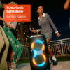 With the JBL PartyBox Stage 320, you can get the party started anytime, anywhere. Transform any space, inside or outdoors, into a dance floor. Powerful JBL Pro Sound and big thumping bass fill a wide soundstage and get the crowd moving, while their eyes are delighted by an adaptive lightshow of swirling starry lights, cool light trails, and amazing strobe effects synced to your beat. Use the mic and guitar inputs to show off your stage presence. You can steer the party’s flow throughout the night with fun interactive party effects. The solid telescopic handle and wide, sturdy wheels mean you can roll the JBL PartyBox Stage 320 just about anywhere, and once you’re there, the splash-proof construction means a little rain won’t ruin the fun. Best of all, it delivers up to 18 hours of playtime—and if the good times are still rolling, just swap out the replaceable battery and keep going. For an even bigger party, it’s easy to connect or use the JBL PartyBox app to connect multiple JBL Auracast-enabled speakers wirelessly. Bring people together and elevate the experience with the JBL PartyBox Stage 320.