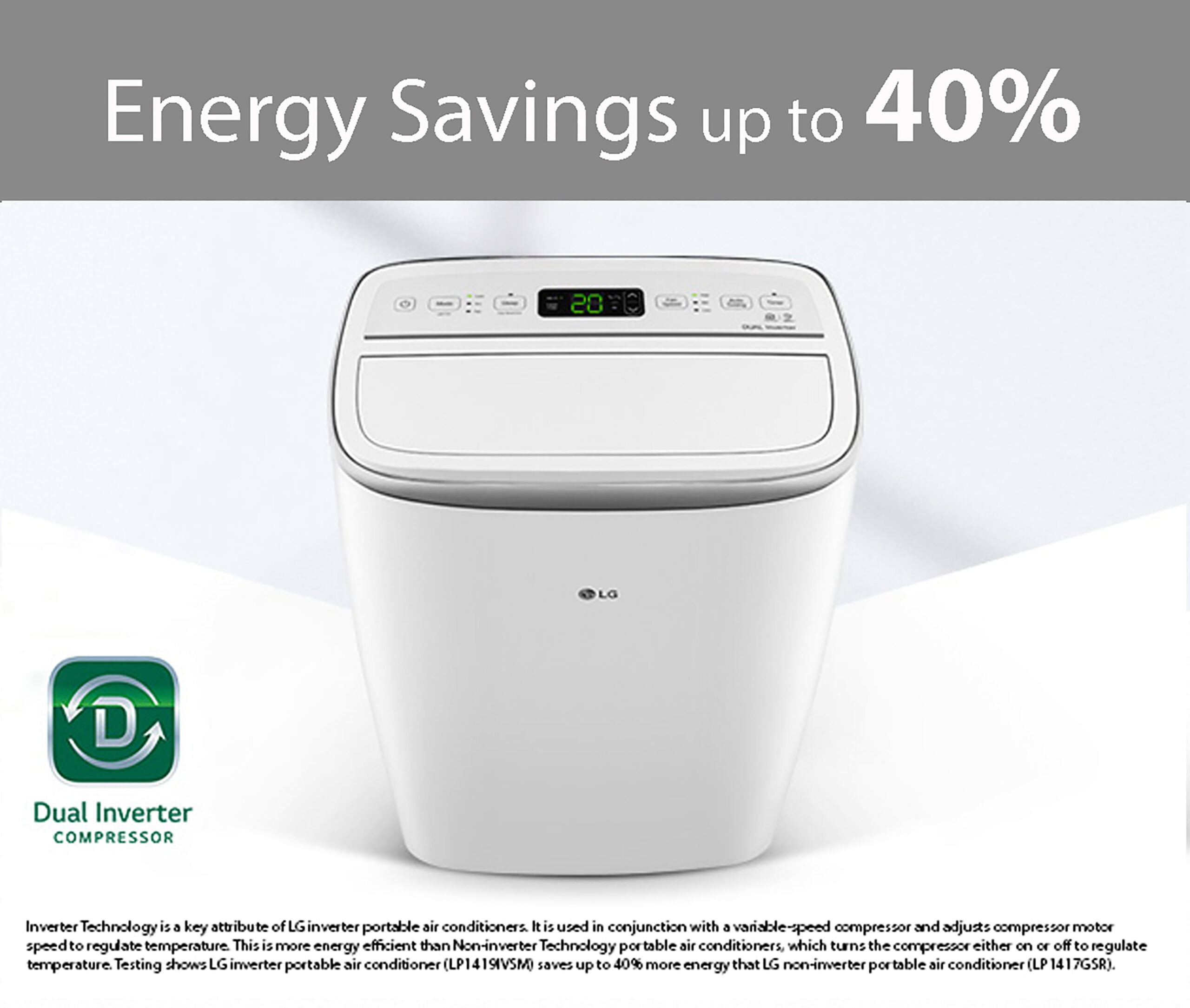 LG 10000 BTU 450 Sq. Ft 115V Dual Inverter Portable Air Conditioner with Wi-Fi Control in White, LP1419IVSM