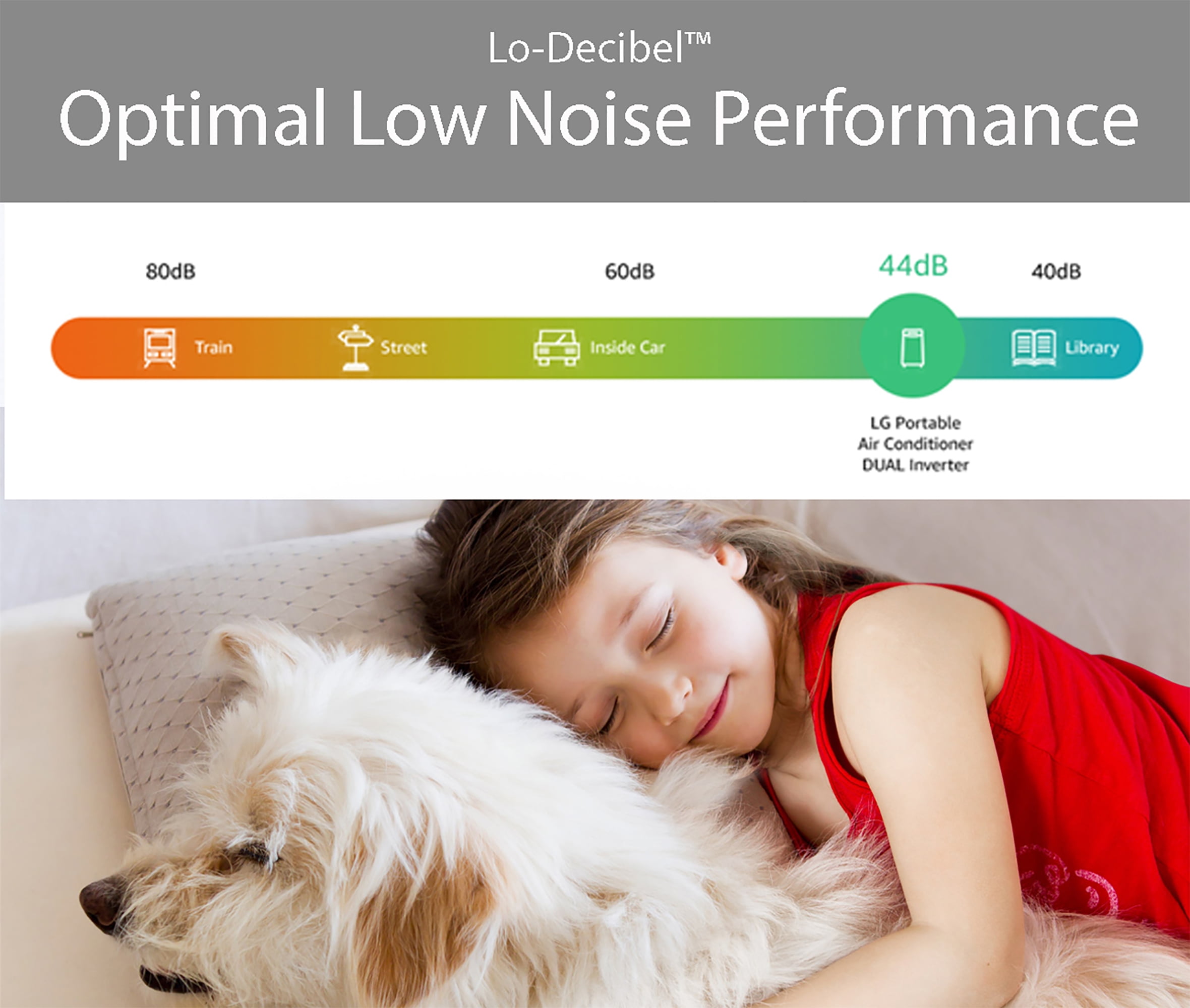 Experience the ultimate in cooling innovation with the LG DUAL Inverter portable air conditioners! Operating at an ultra-quiet 44 dB in sleep mode, this portable AC unit offers silent comfort rivaling that of a library. The DUAL Inverter technology delivers remarkable efficiency, resulting in energy savings of up to 40%. With LG ThinQ technology, you can control your air conditioner using your smartphone, or easily integrate it with Amazon Alexa and Hey Google for hands-free control. 3 cooling and fan speeds and a 24-hour timer enable you to create a personalized cooling schedule to match your preferred settings. The auto-swing air vent ensures optimal airflow distribution, whether you’re cooling, dehumidifying, or simply circulating the air. The auto restart feature restores operation automatically in case of a power outage. This portable cooling unit comes with an LCD remote control for convenient operation, easy rolling casters for effortless portability, an installation kit with a built-in storage tray, a removable and washable filter for improved air quality, and a check filter alert to remind you of when it’s time for cleaning. Upgrade your cooling with LG DUAL Inverter air conditioner today! LP1419IVSM