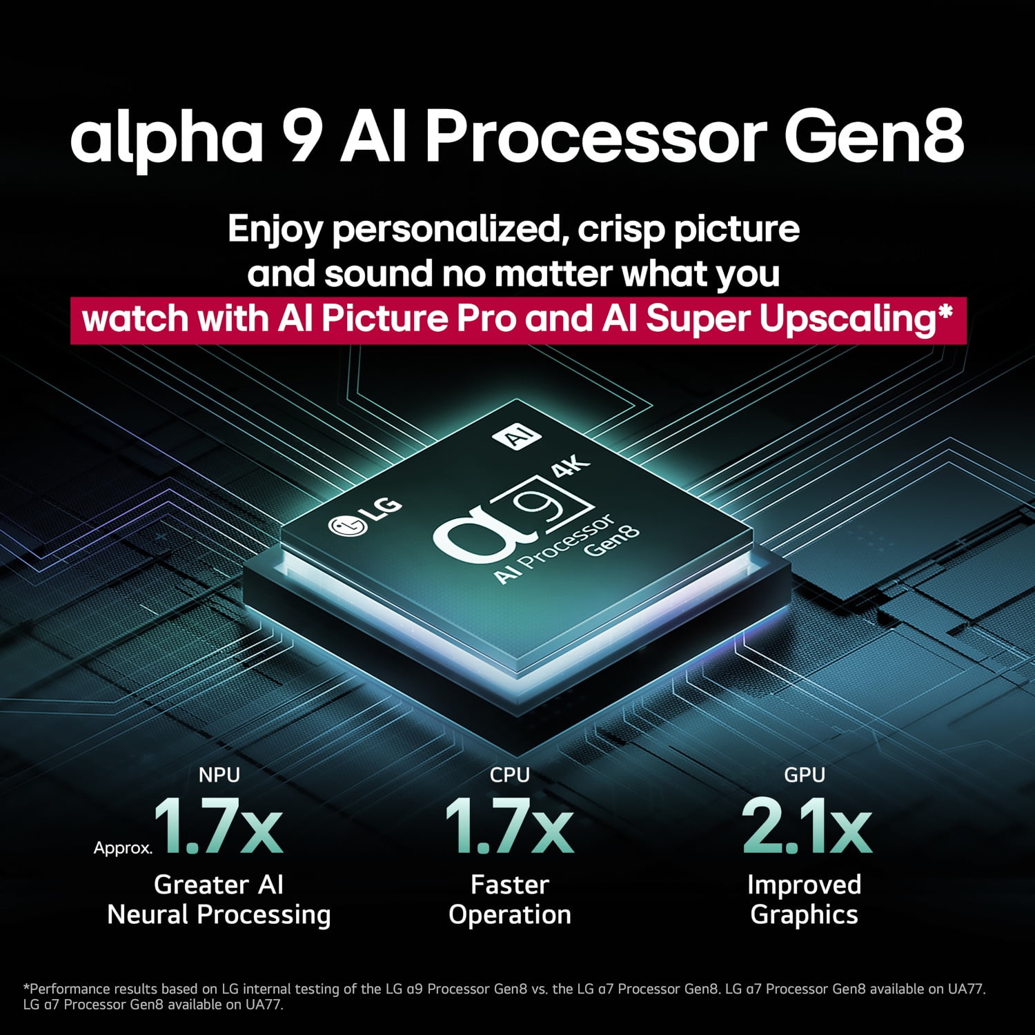 - Alpha 9 AI Processor Gen8: Provides smooth, crisp picture and sound with AI Picture Pro and AI Super Upscaling