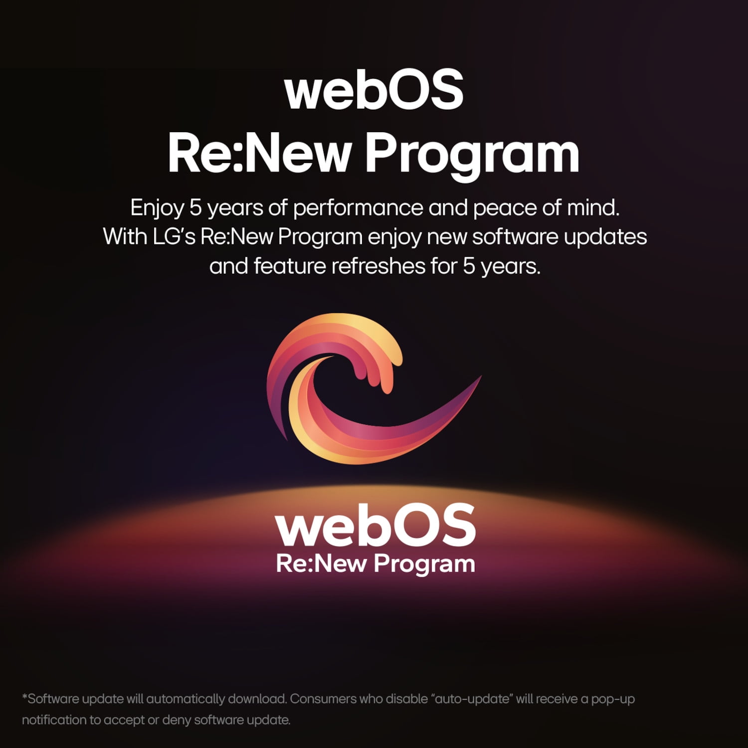 - With webOS & LG Channels, browse your favorite streaming apps & view 300+ free channels. Enjoy up to 5 years of softward updates with webOS Re:New* (*Internet connection and subscriptions to streaming services are required; number of LG Channels subject to change. Software update will automatically download. Consumers who disable “auto-update” will receive a pop-up notification to accept or deny software update.)
