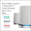 - Integrated cable modem and WiFi 6 satellite system provides high-performance WiFi coverage for up to 5,000 sq. ft. and 40+ devices