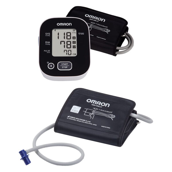 Use this special bundle of blood pressure monitor and extra cuff to help manage your health. To proactively manage your blood pressure at home, the Omron 3 Series BP7150 Digital Upper Arm Blood Pressure Monitor with D-Ring Cuff features Bluetooth technology. Clinically validated for accuracy, this monitor has a simple, 1-touch operation, stores up to 14 readings for a single user, and seamlessly transfers results to your mobile device through the free Omron Connect app. It includes a soft, contoured, wide-range D-ring cuff suitable for adult upper arms measuring 9 in. to 17 in. in circumference. This special bundle also includes a second 9 in. to 17 in. D-ring cuff so you’ll always have a spare on hand.