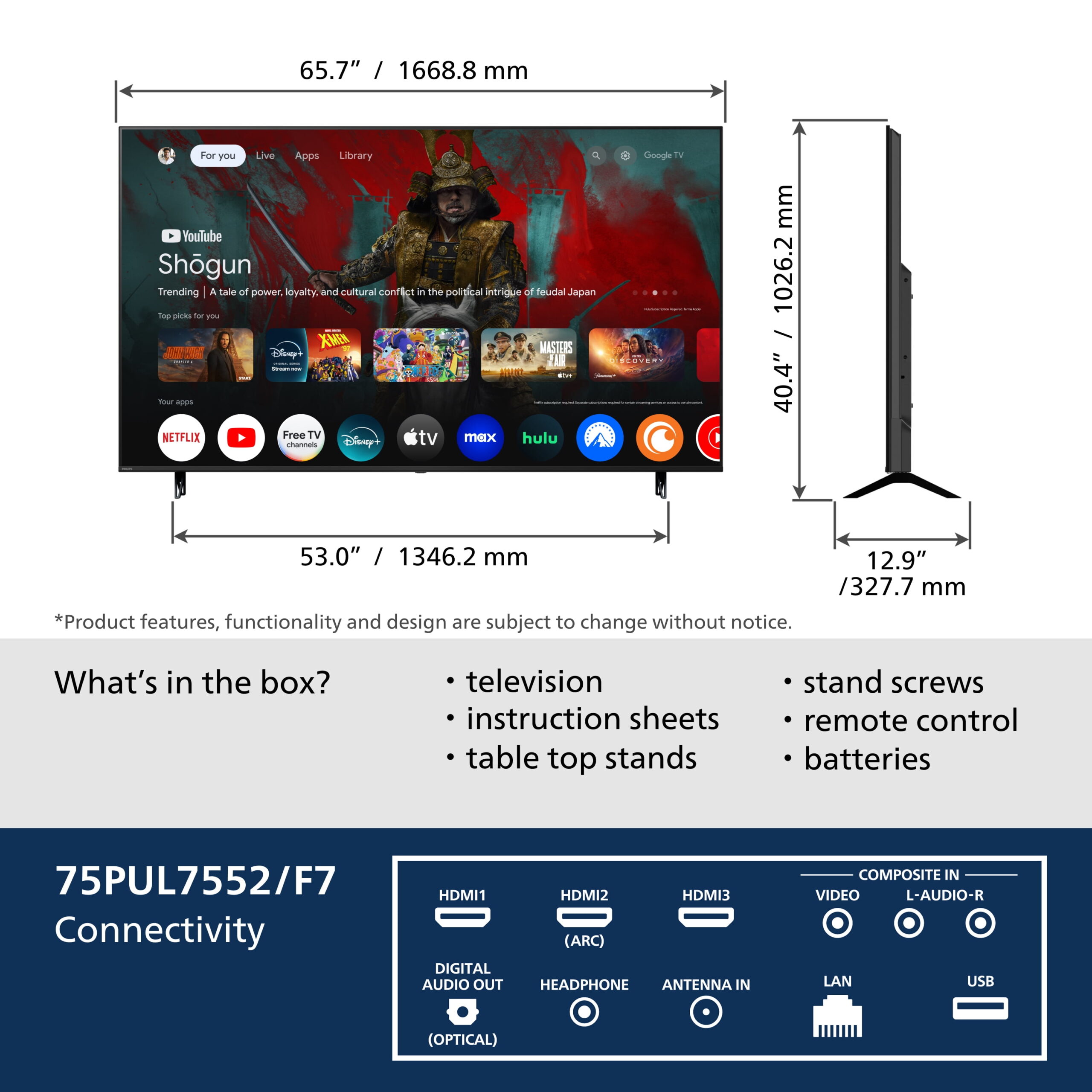 Philips 75" Class 4K Ultra HD (2160p) Google Smart LED TV (75PUL7552/F7)