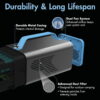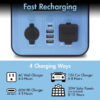 - Fast recharging options: solar panel (7-8 hours with 50W), AC wall charger (4-6 hours), or car charger (12V 6-8 hours)