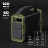 - Rechargeable via wall outlet, car adapter, or 60W solar panel, ensuring versatility