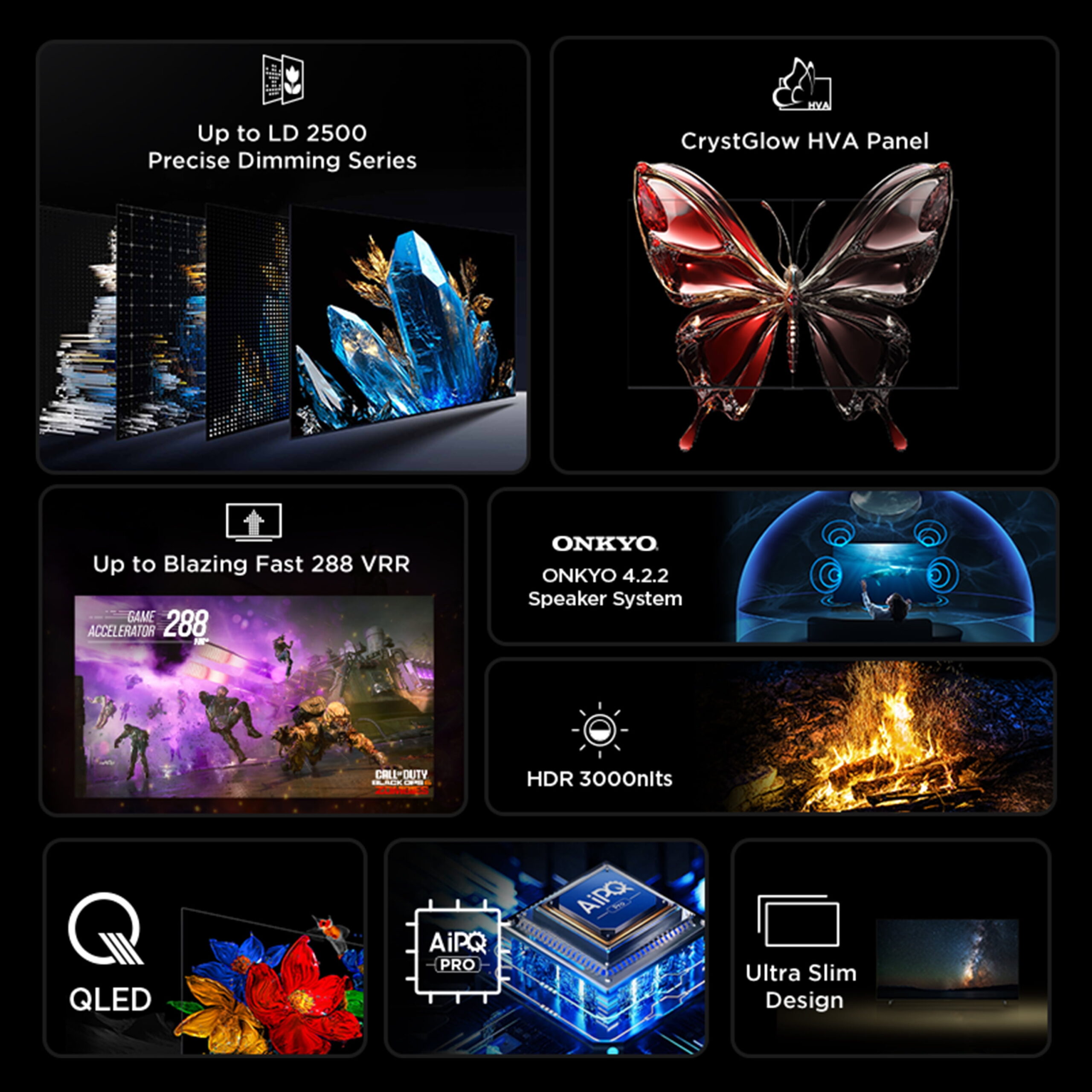 - QD-Mini LED – This premium level of Mini LED TV, now with the New TCL Halo Control System, ensures a high-quality viewing experience.