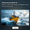 - Chromecast Built-In –Works with the streaming apps you know and love. Enjoy TV shows, movies, videos, songs, games, sports and more from thousands of apps.