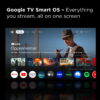 - Google TV Smart OS: The entertainment you love. Google TV brings your favorite movies, shows, and live shows together.