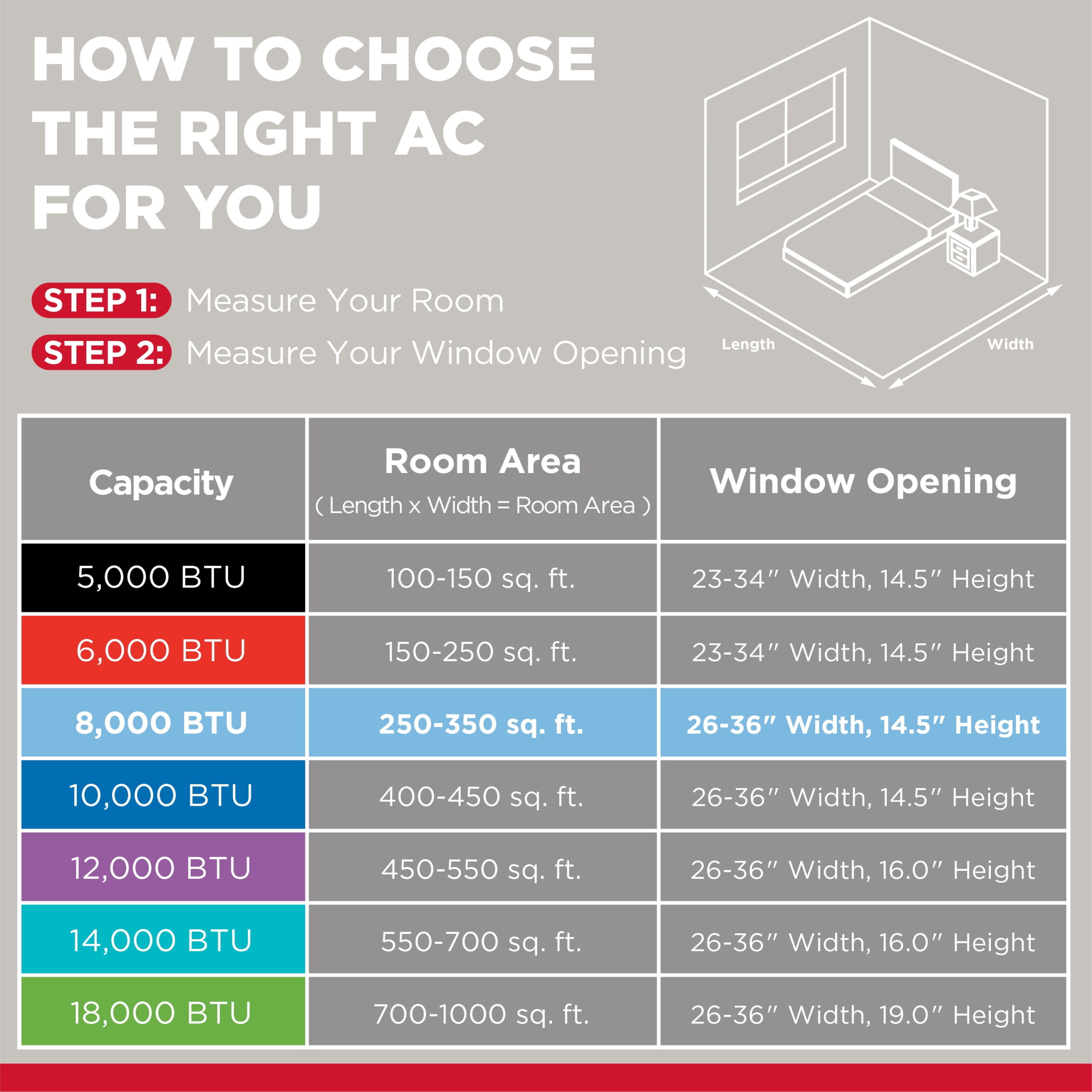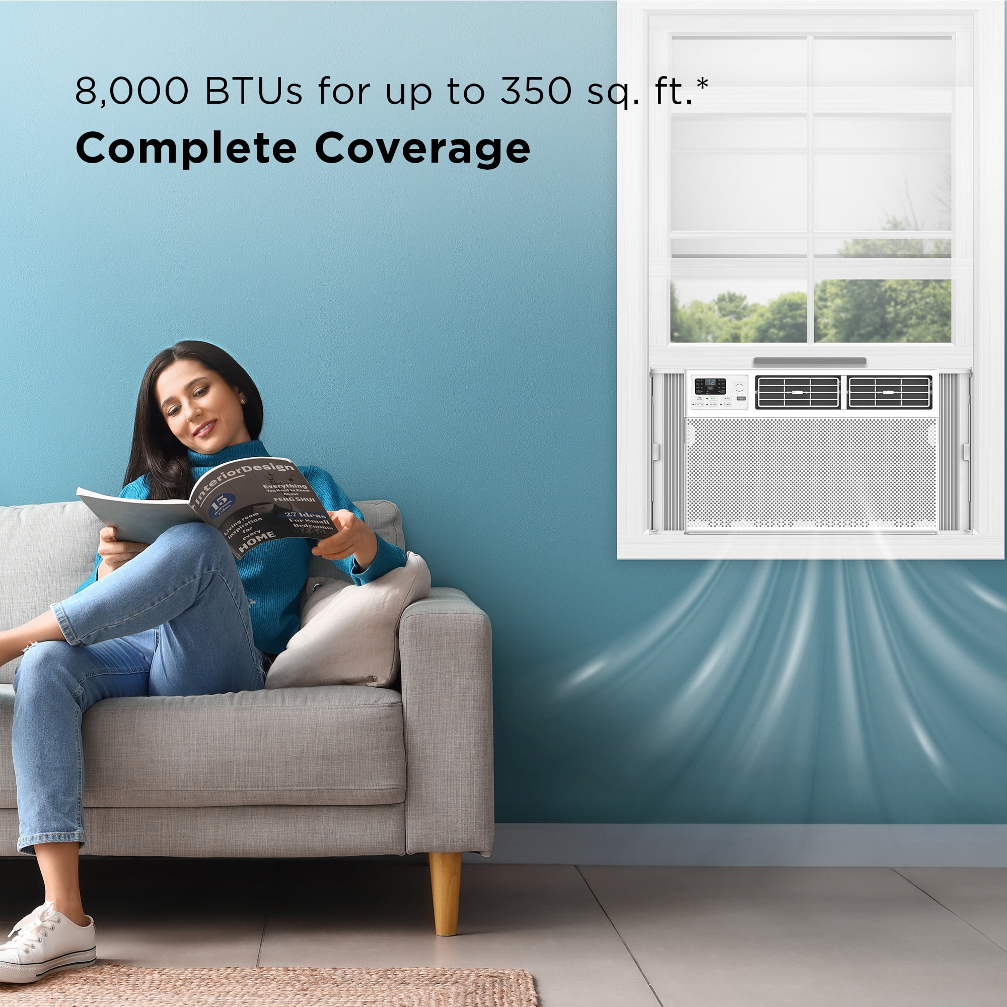 - MAXIMUM PERFORMANCE: The 8,000 BTU window air conditioner is powerful enough to cool rooms up to 350 sq. ft. and features multiple fan speeds that allow you to choose your level of comfort.