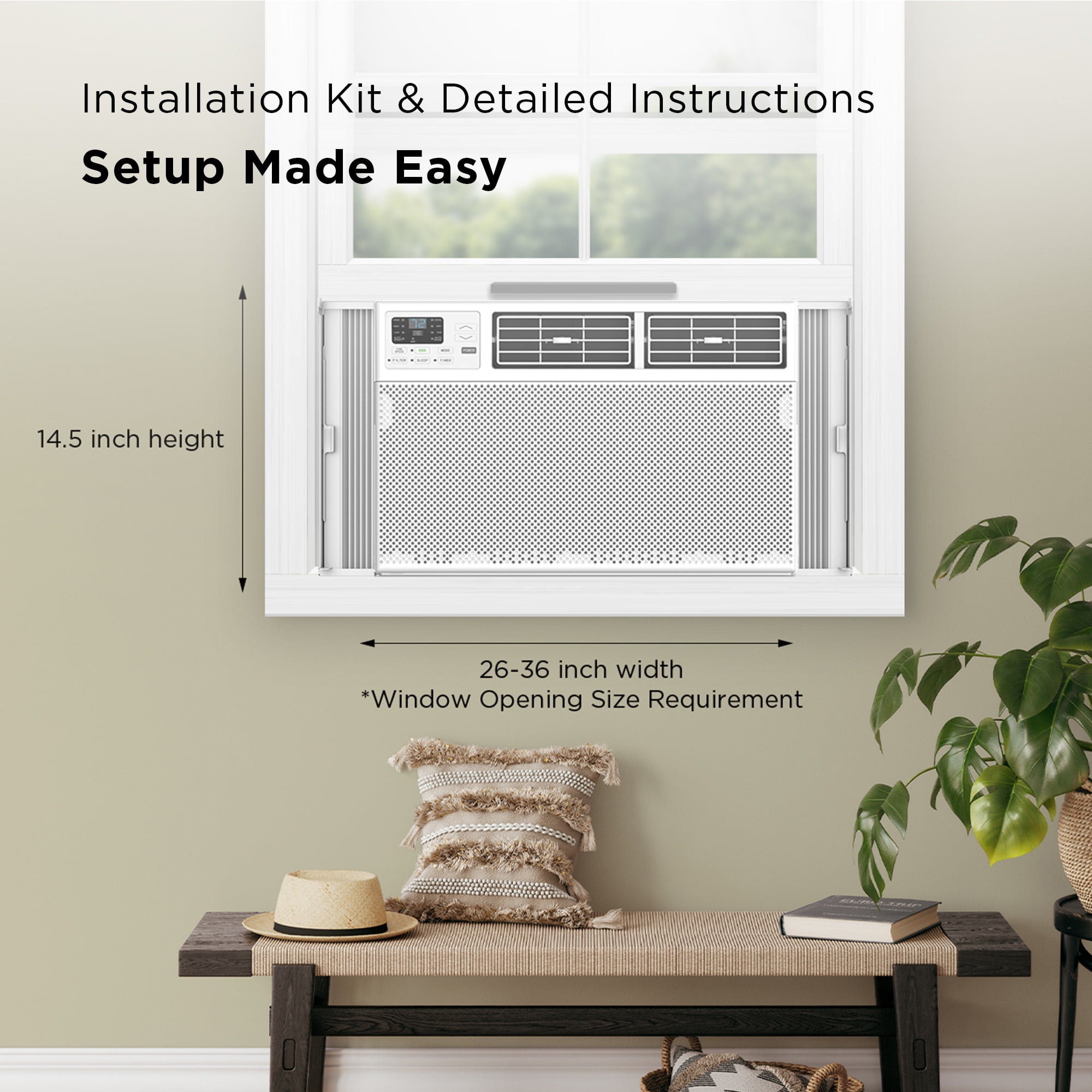 - SETUP MADE EASY: You don’t have to be an expert technician to set up your new window AC unit with the simple and easy installation kit. A screwdriver is required for setup but not included. Some window frames may require pre-drilled pilot holes (Window Size Requirement: 26-36 inch width, 14.5 inch opening height)